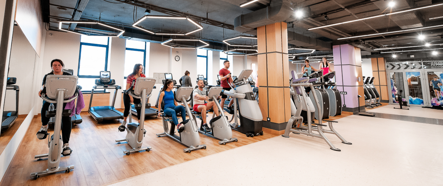 В наших клубах есть тренажёрный зал, кардиозона, залы для групповых программ,